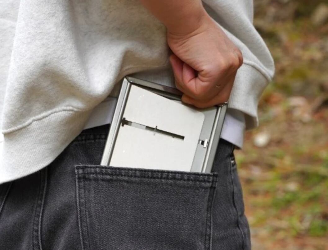 展開時でも手のひらに収まる W14cm × D11cm × H9cm の超小型グリル。