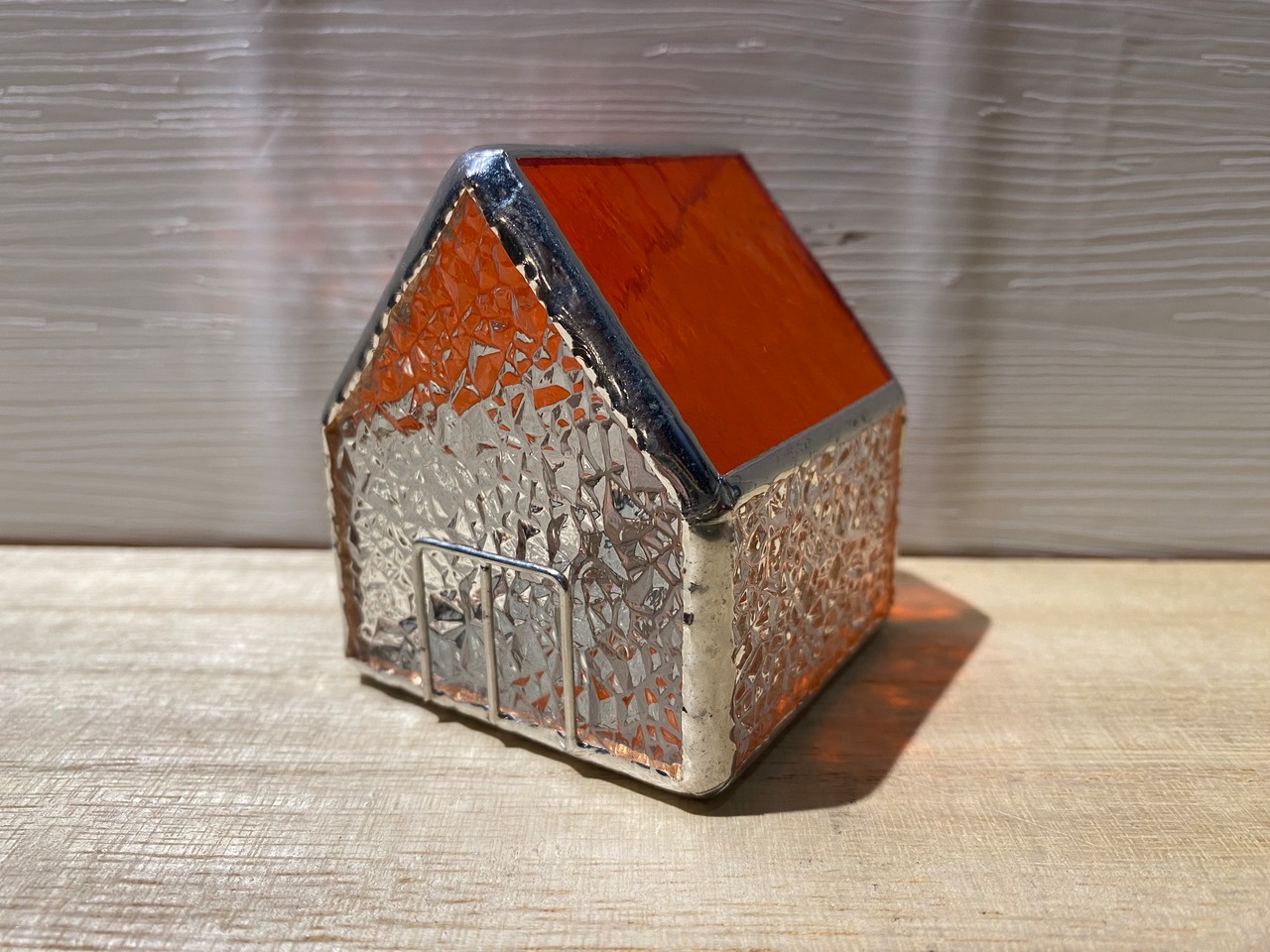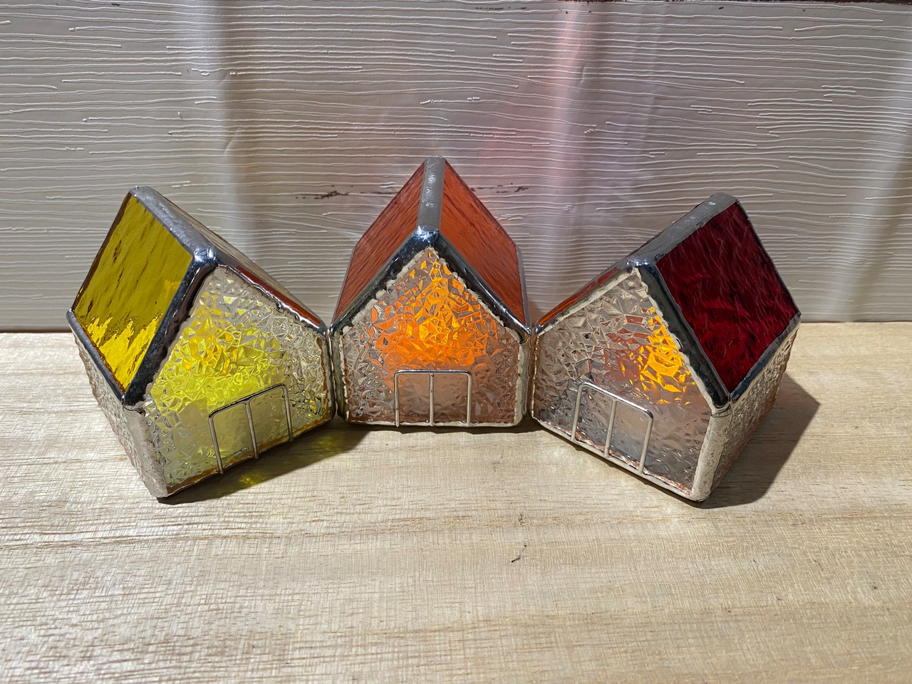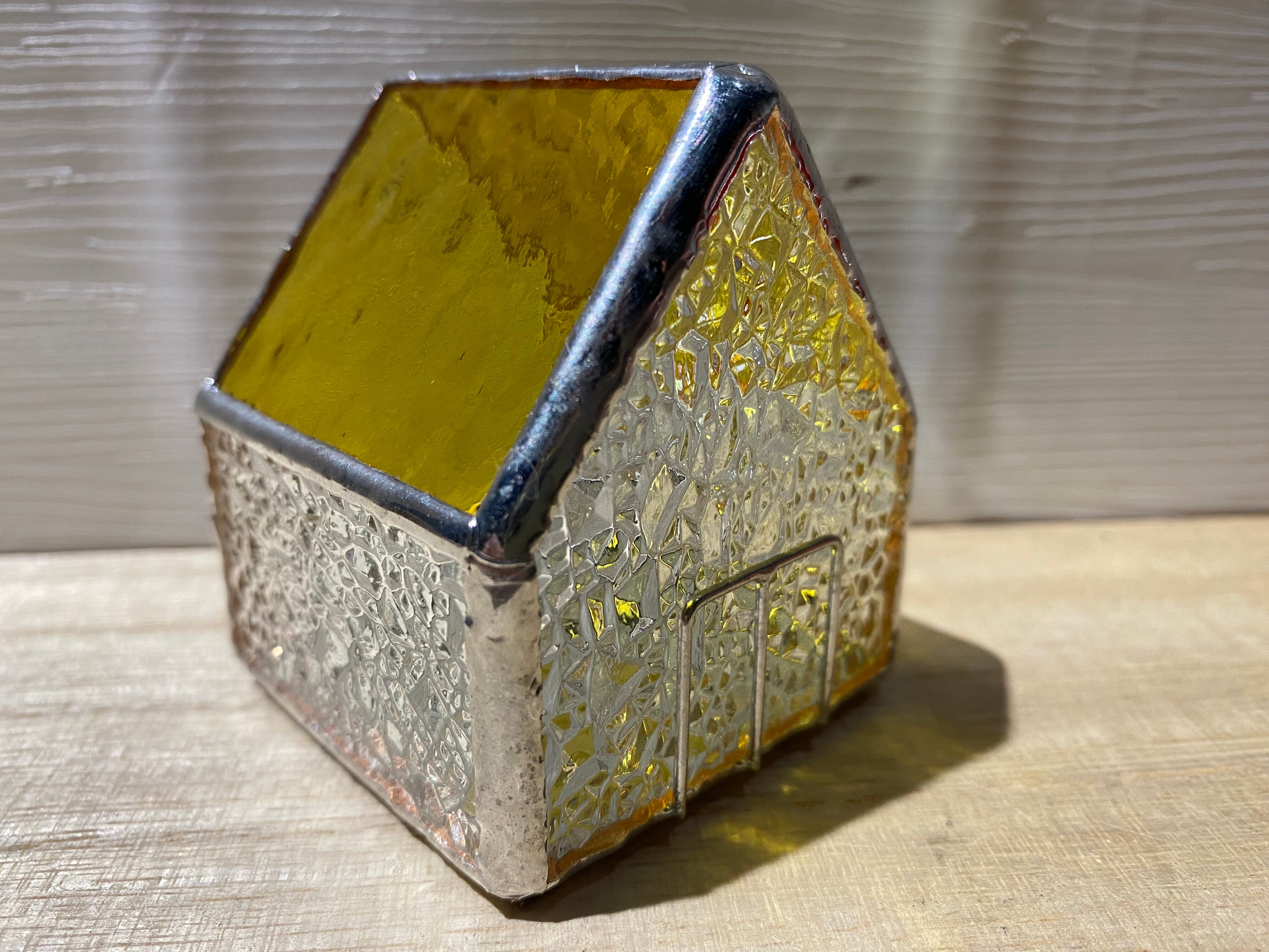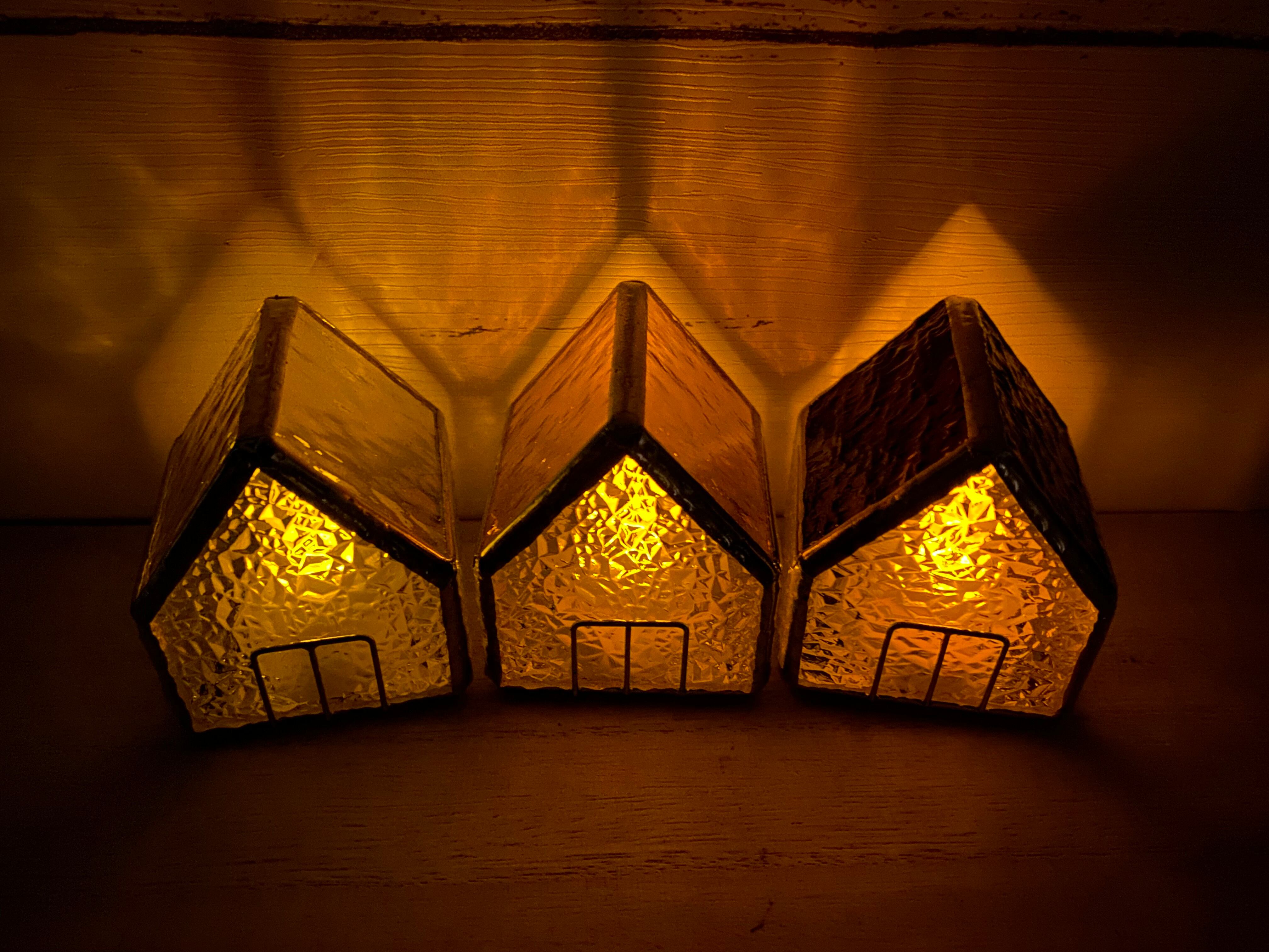 森の中にある小さなおうちをイメージしてステンドグラスで作ったおうちにLEDキャンドルを入れて楽しめます!