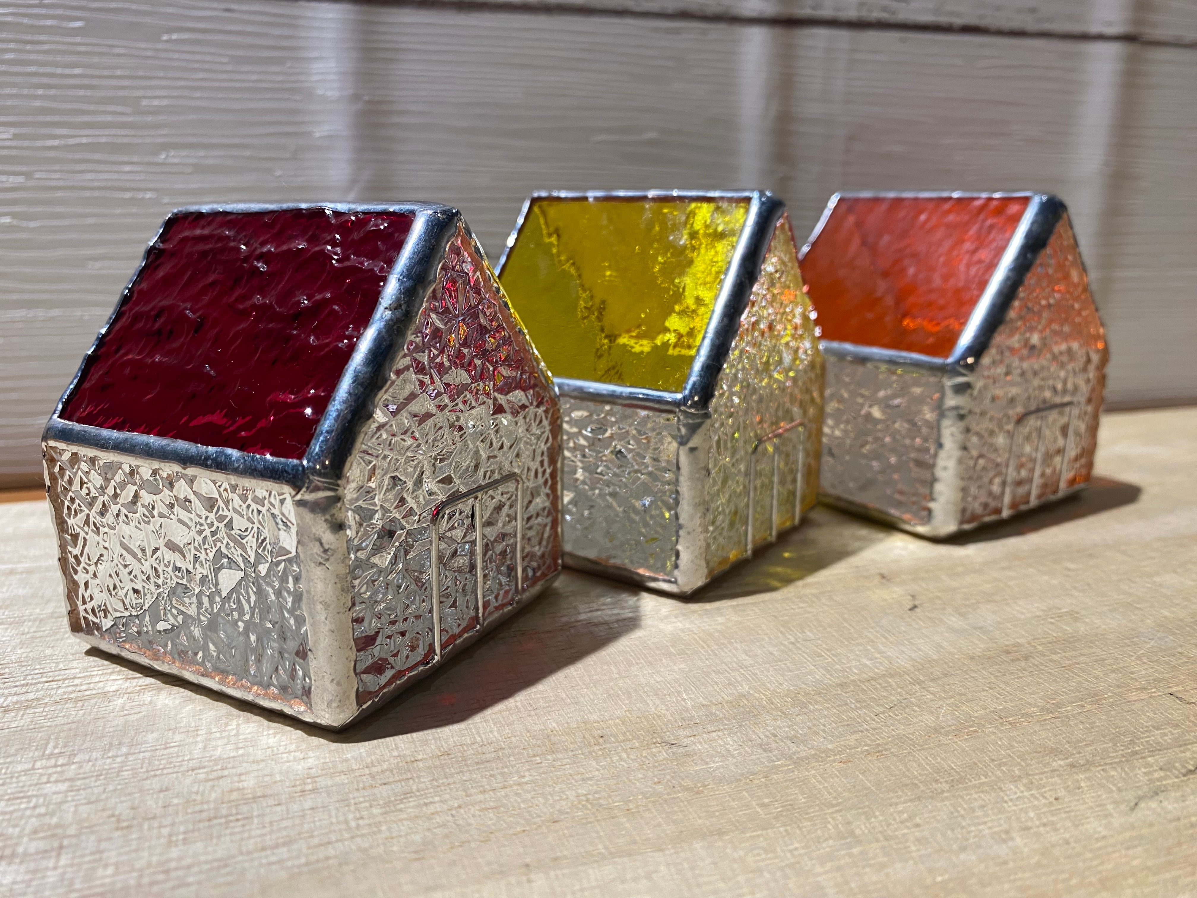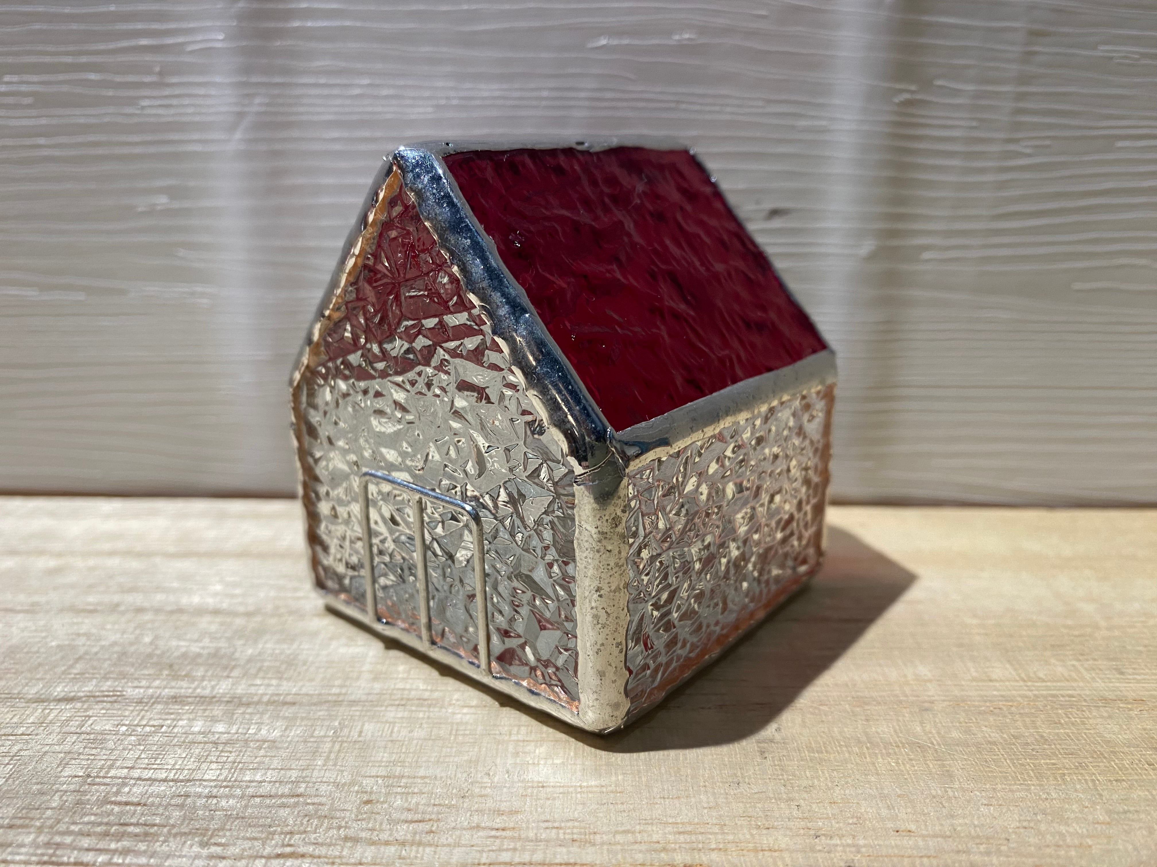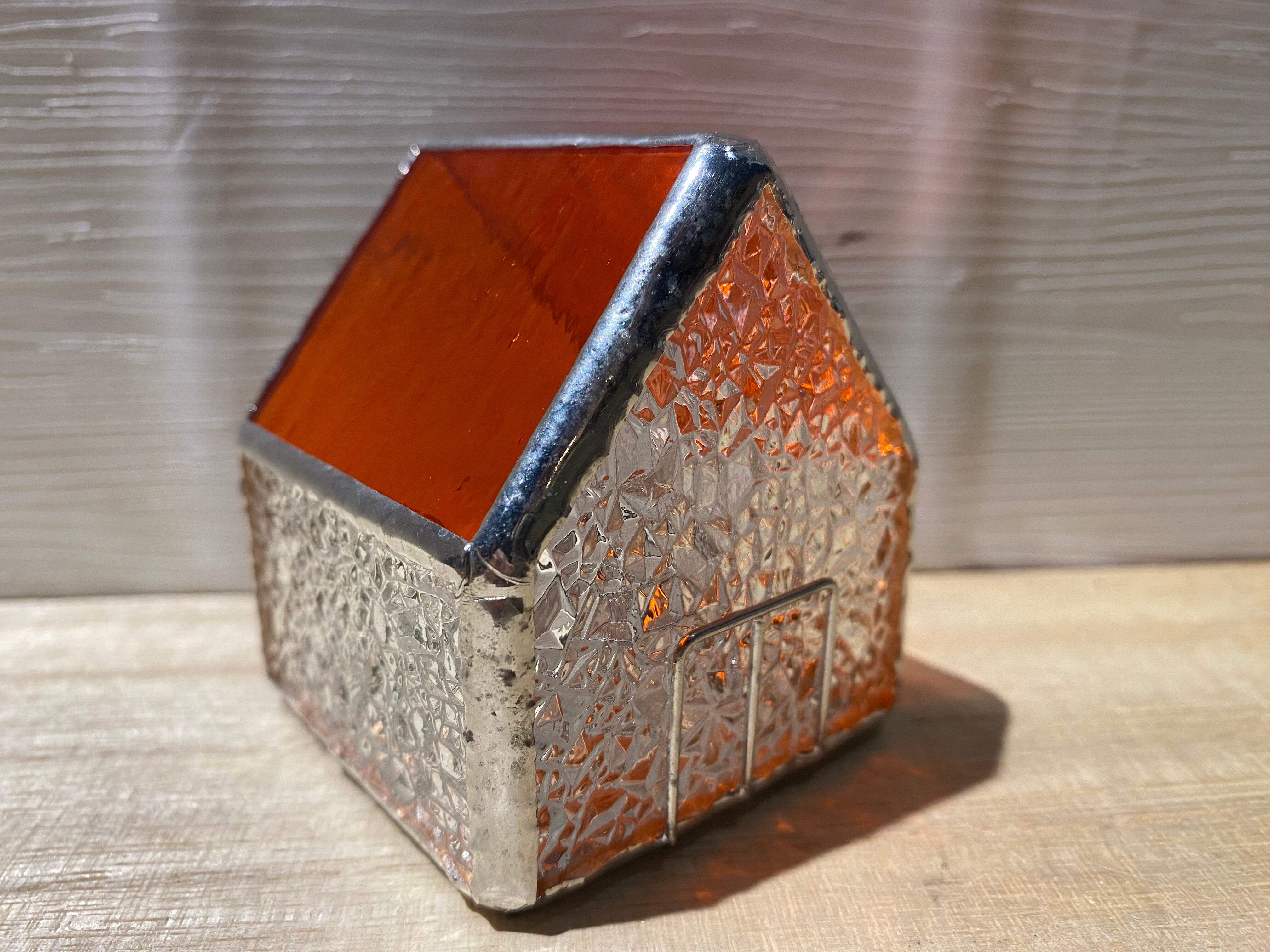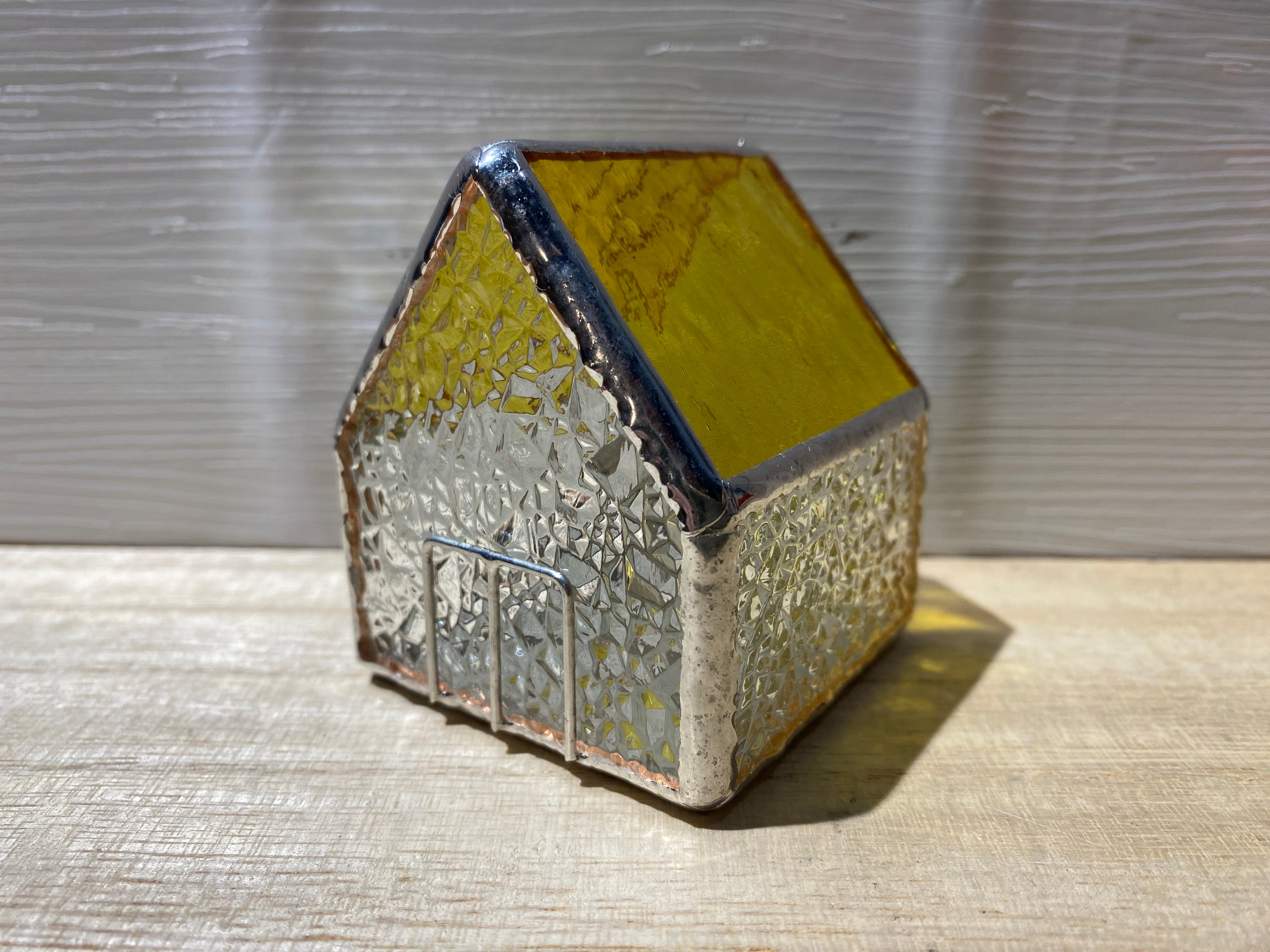 森の中にある小さなおうちをイメージしてステンドグラスで作ったおうちにLEDキャンドルを入れて楽しめます!