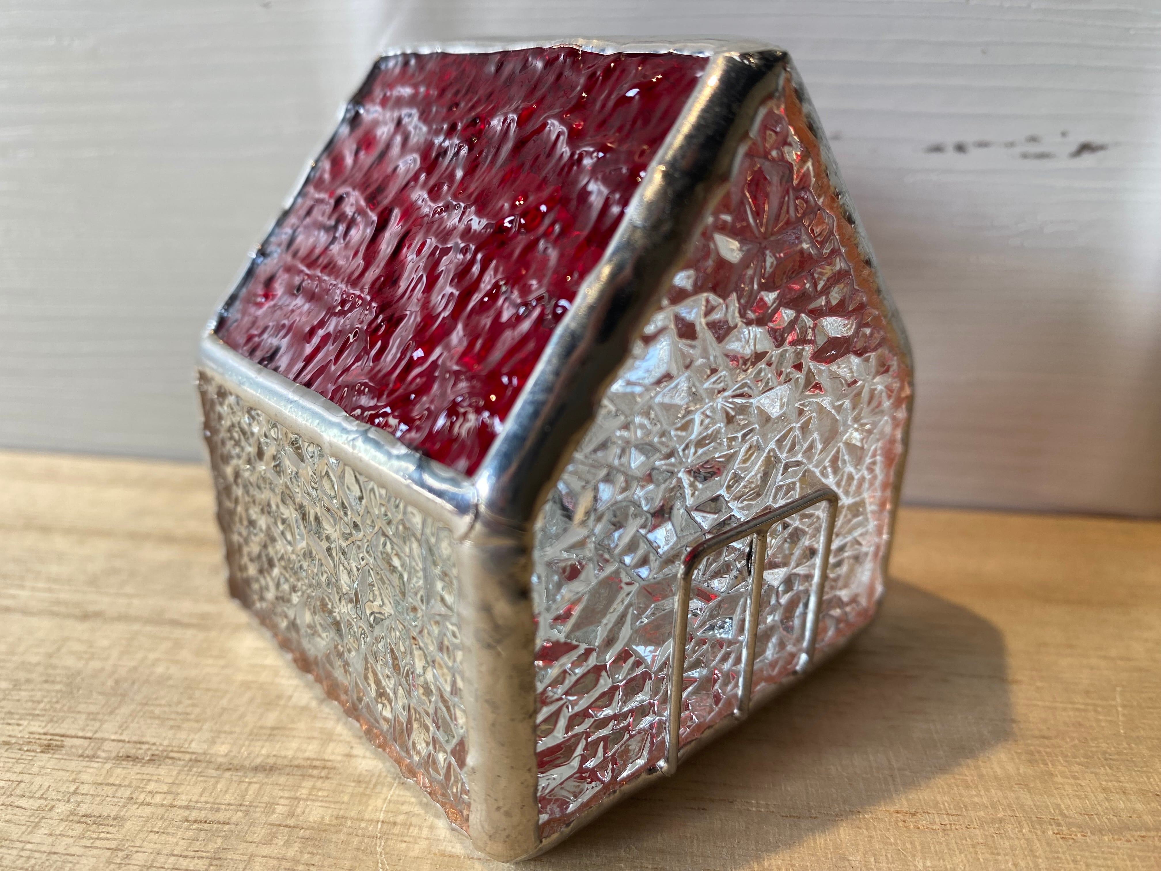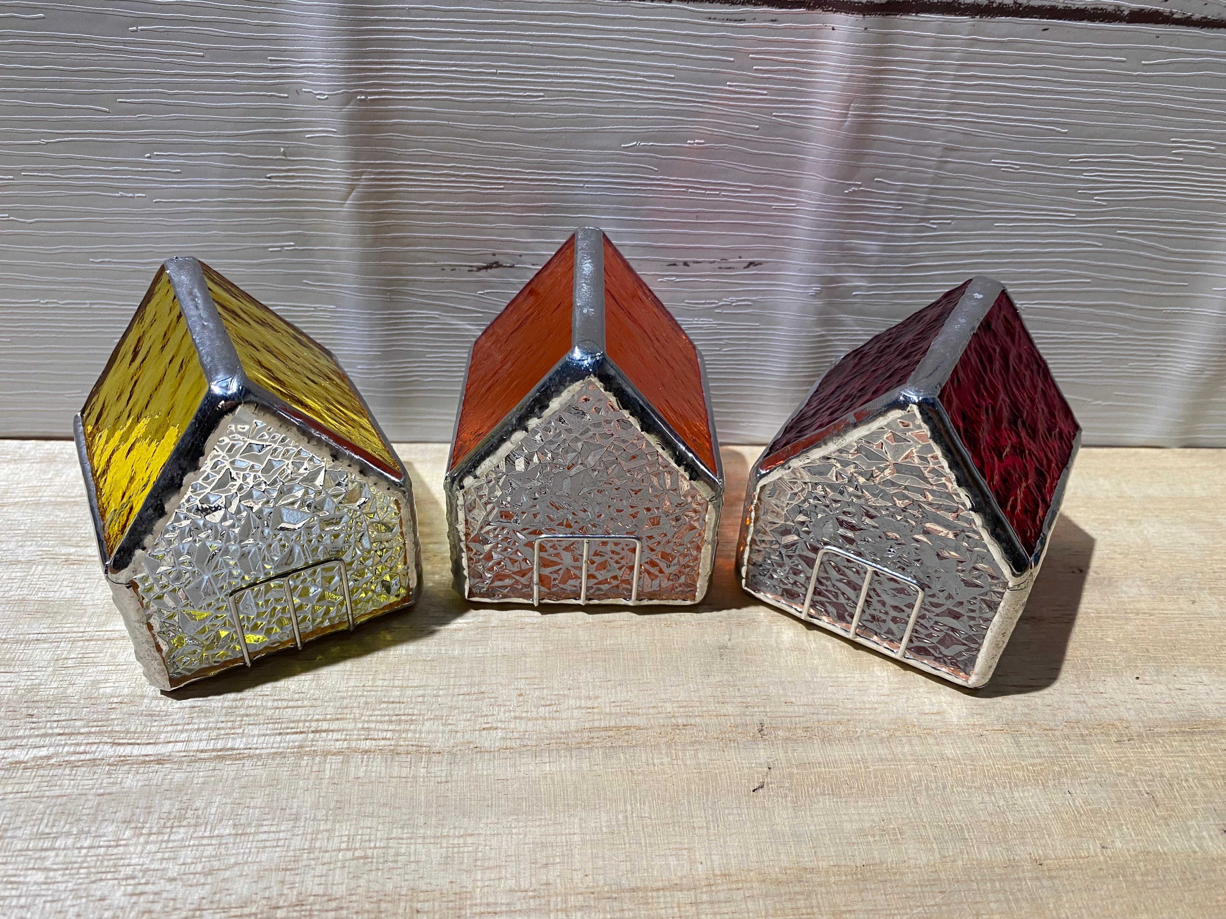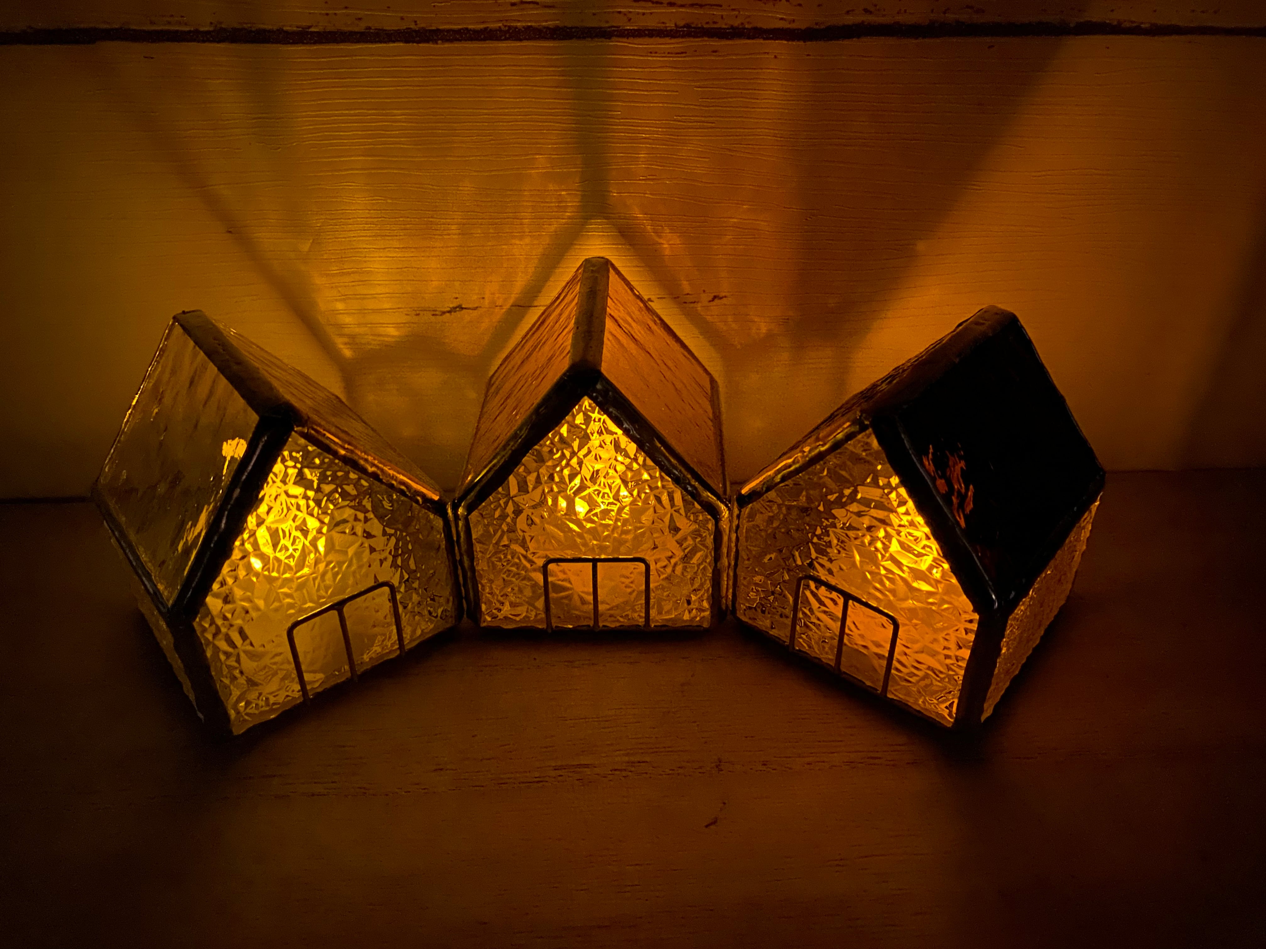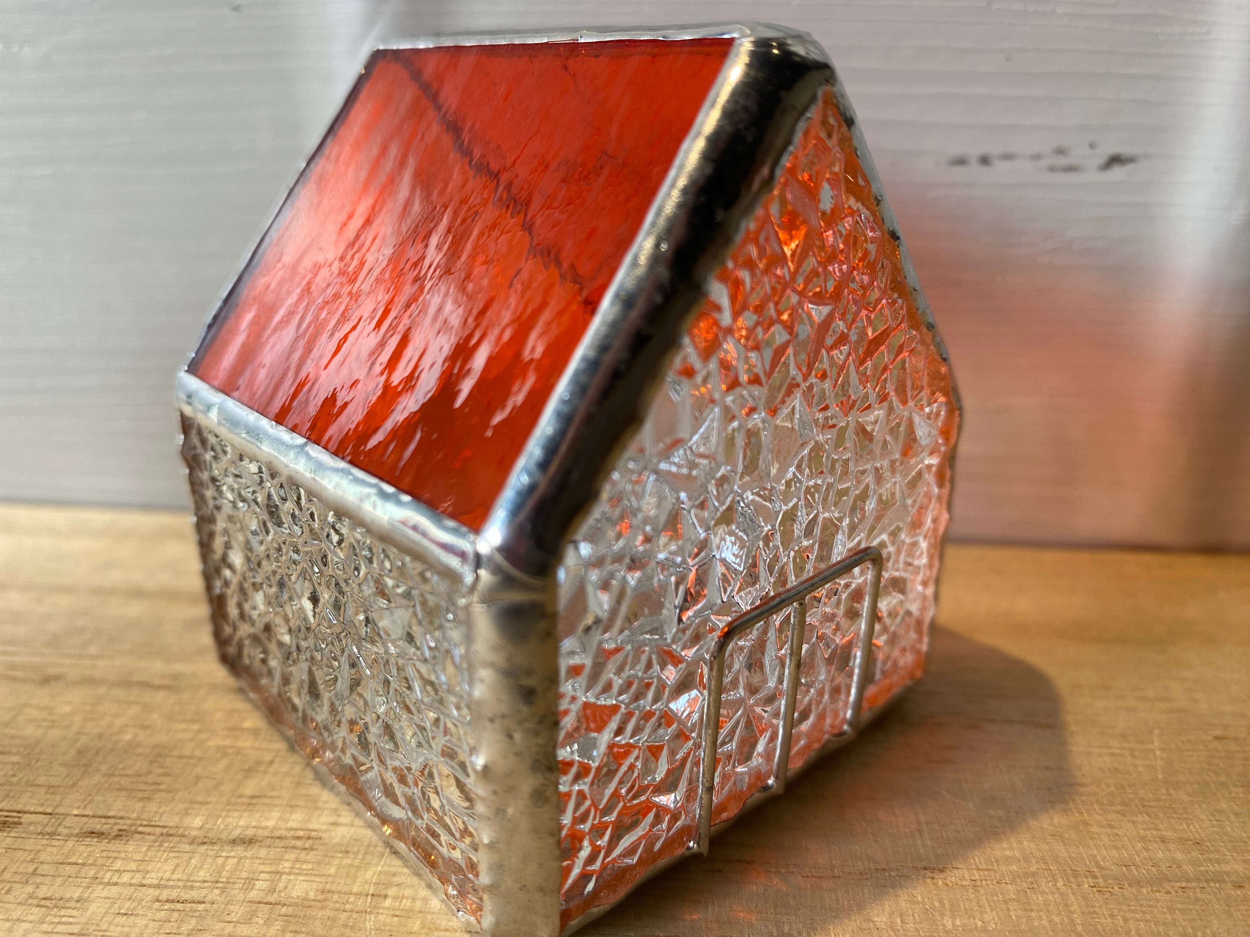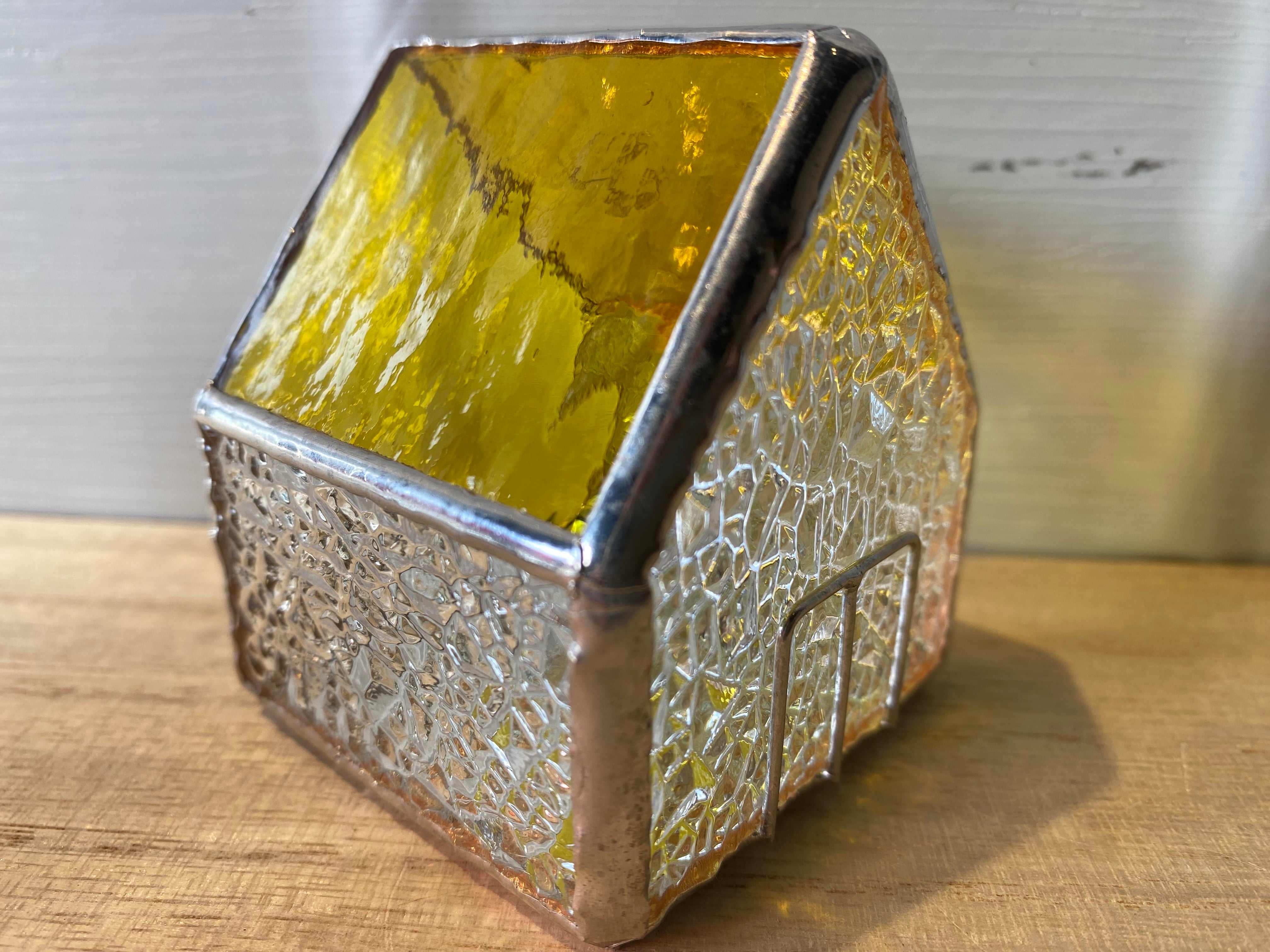 森の中にある小さなおうちをイメージしてステンドグラスで作ったおうちにLEDキャンドルを入れて楽しめます!