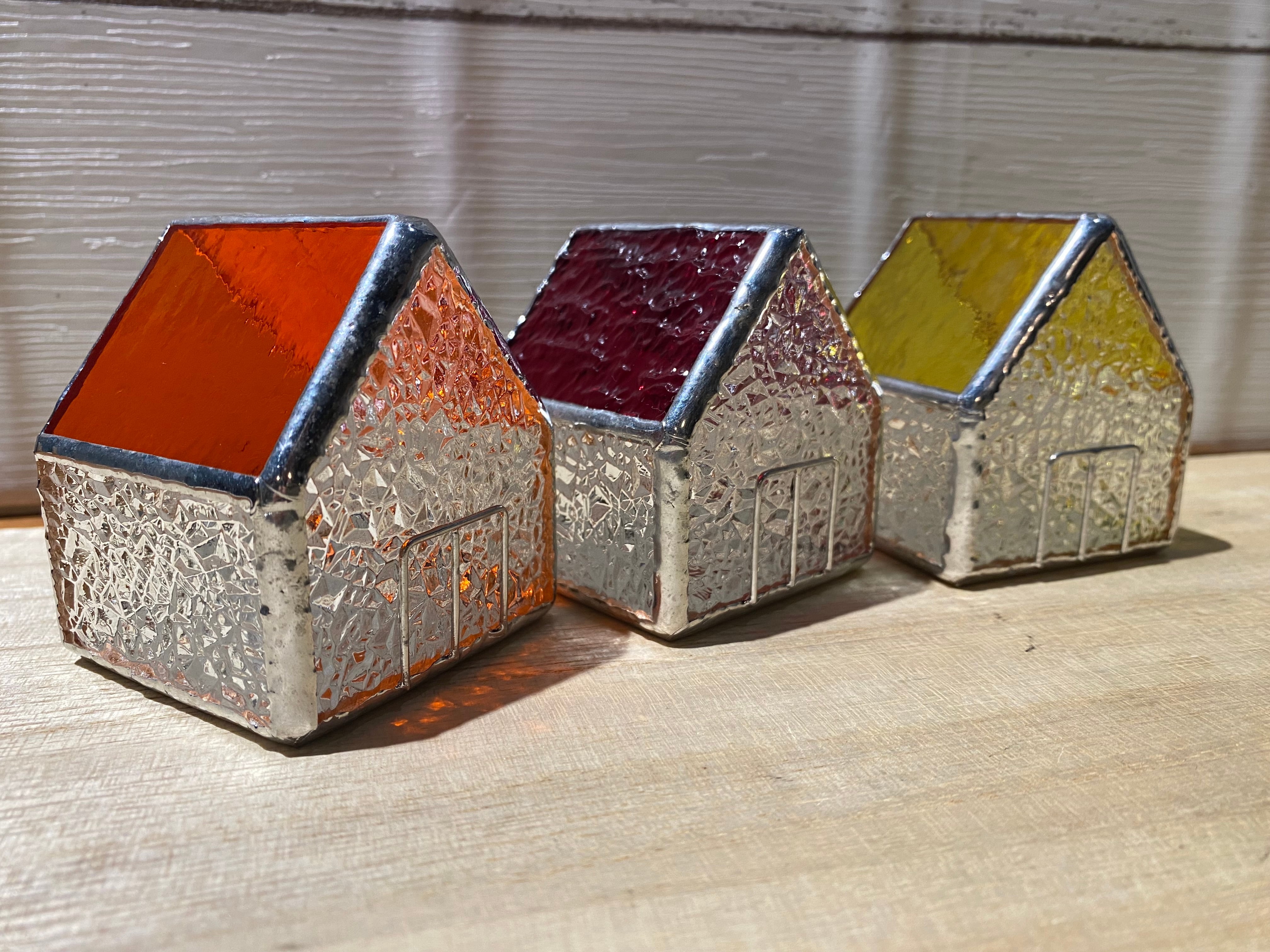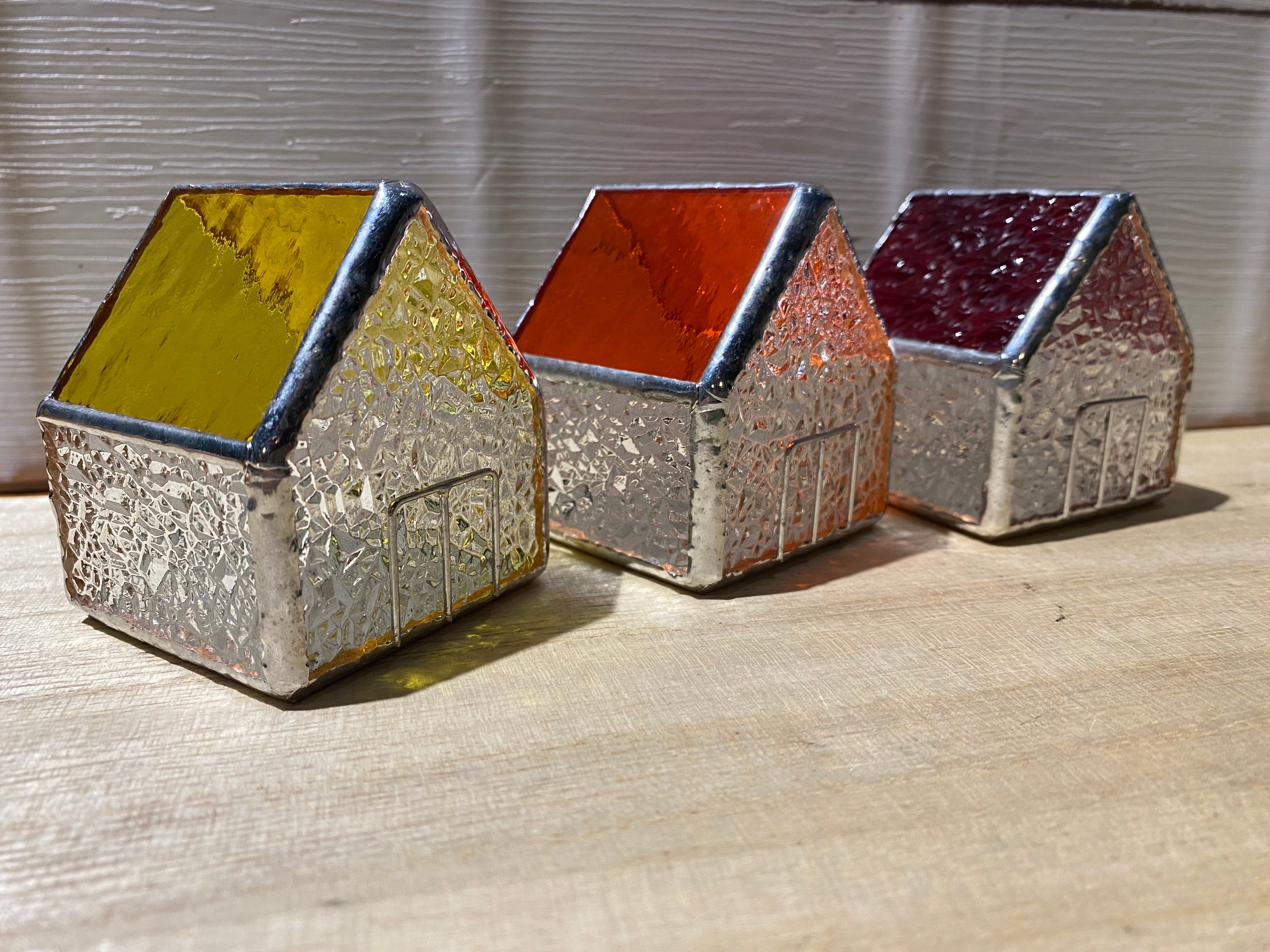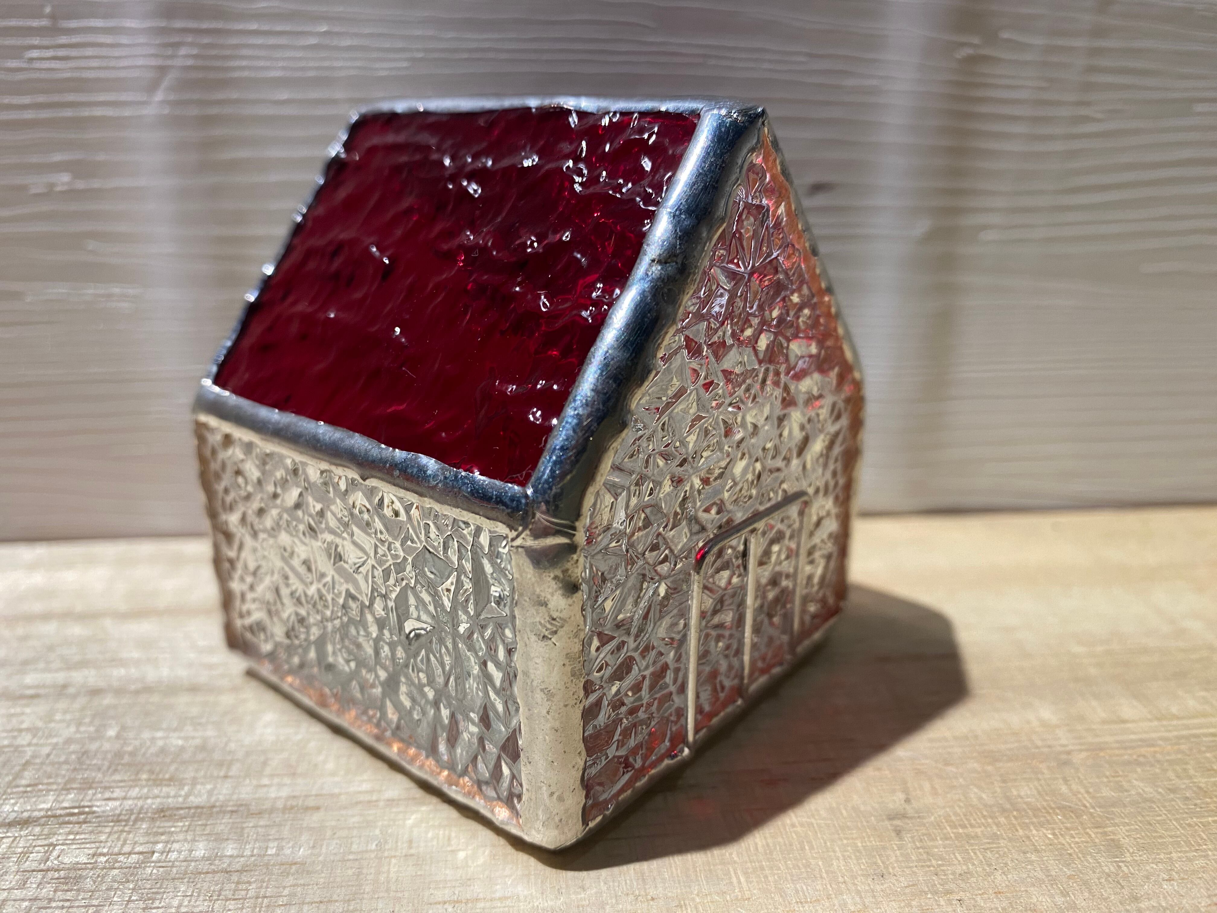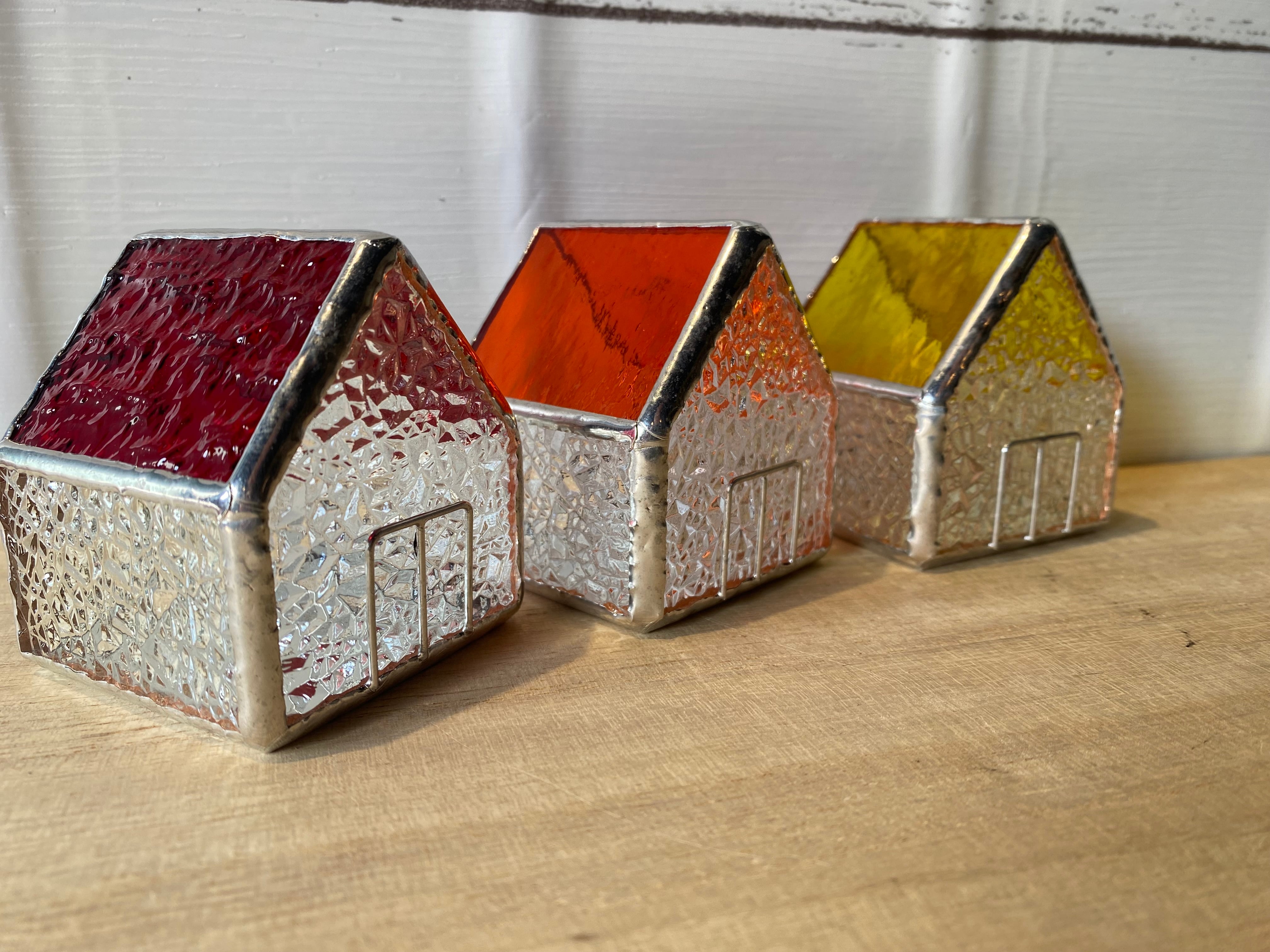 森の中にある小さなおうちをイメージしてステンドグラスで作ったおうちにLEDキャンドルを入れて楽しめます!