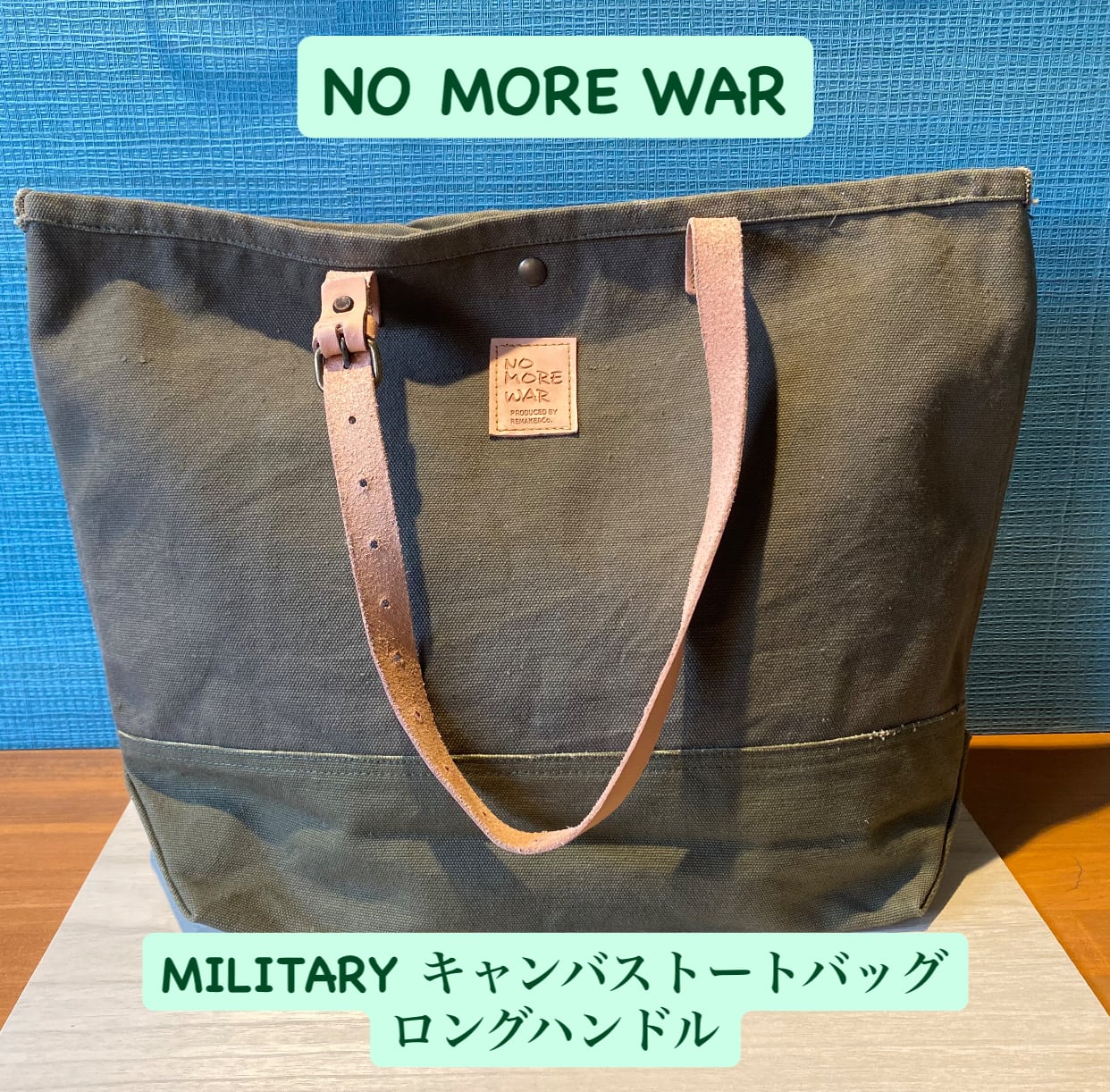 『NO MORE WAR MILITARY キャンバストートバッグ(ロングハンドル)』