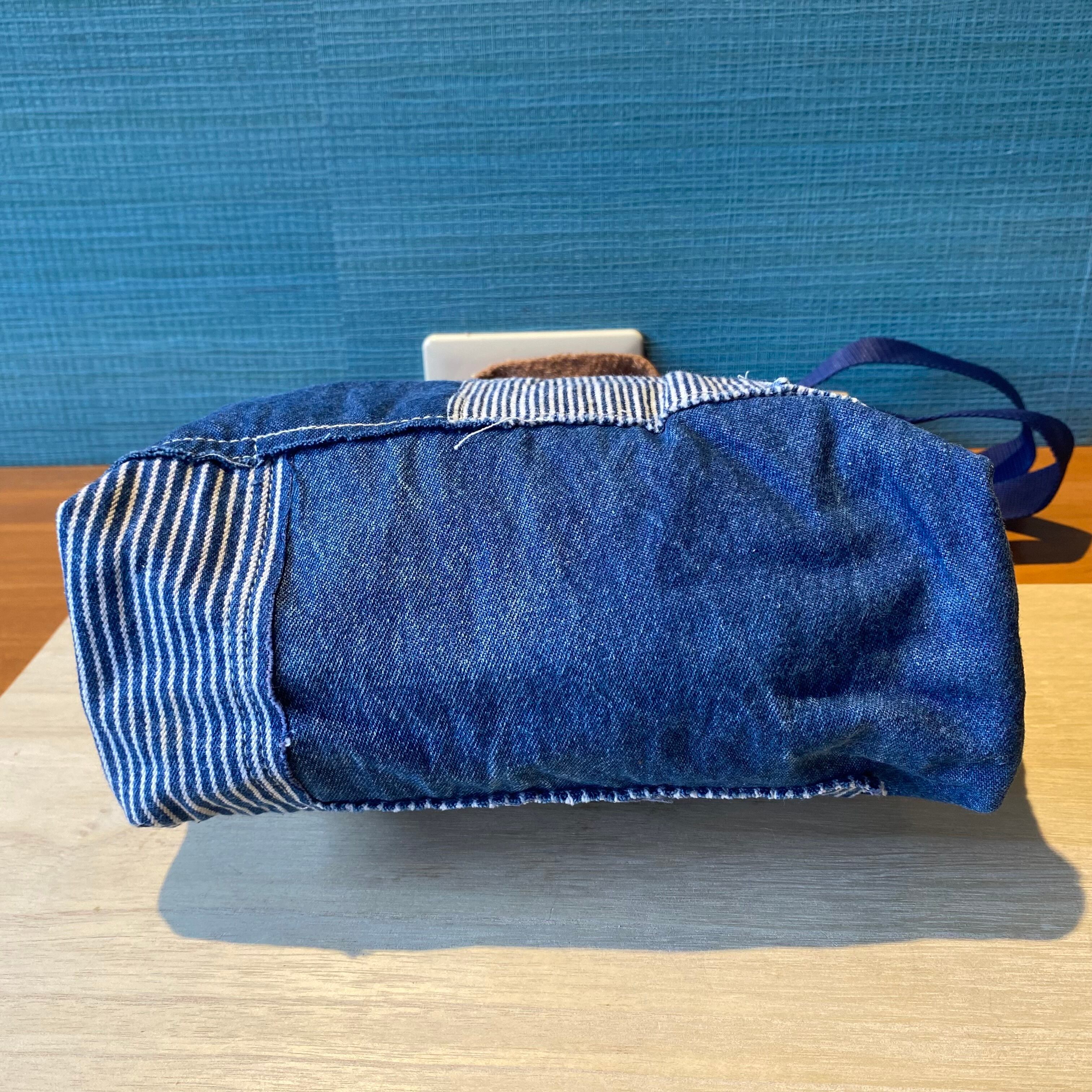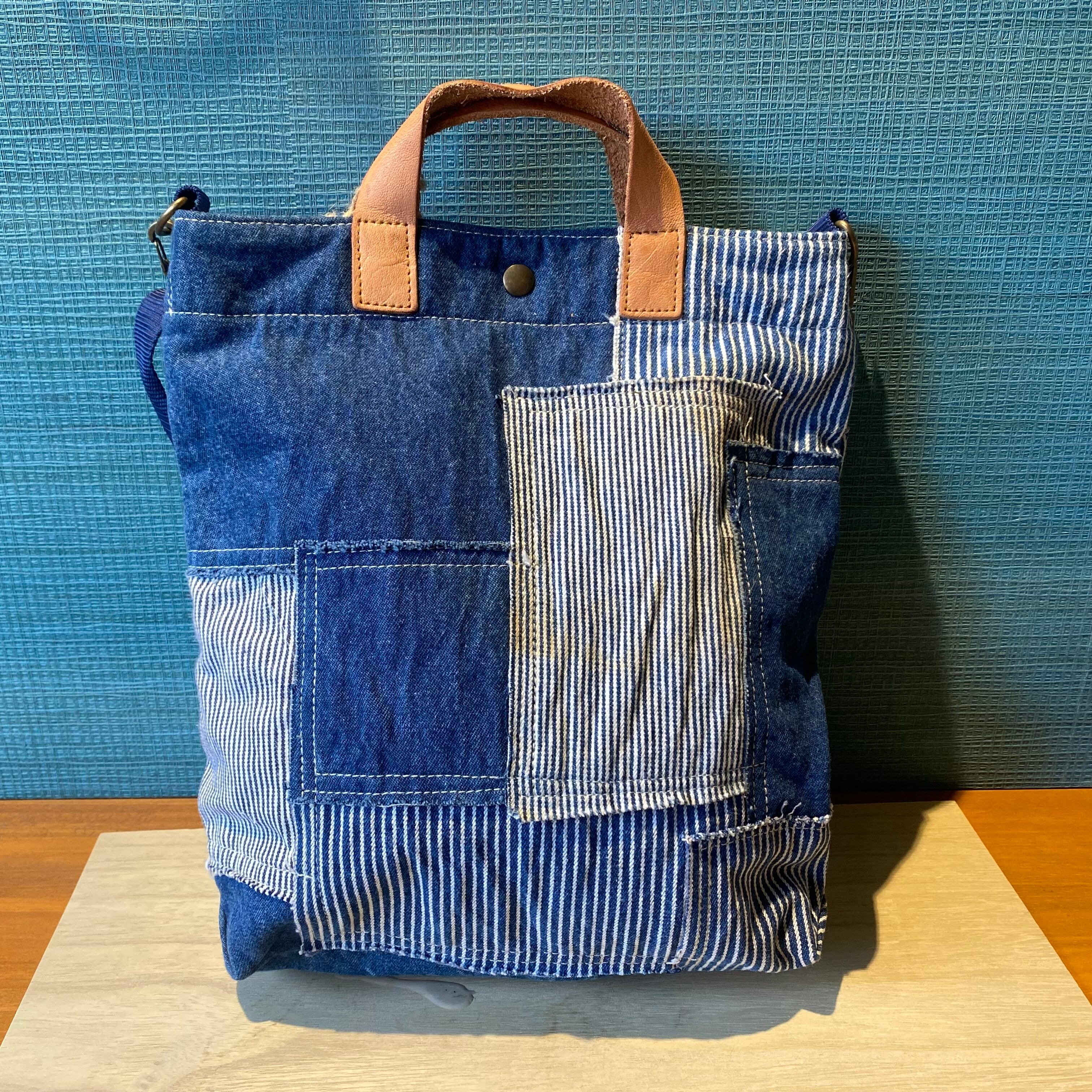 デニムとヒッコリー生地を用いた、パッチワークのおしゃれなトートバッグです!