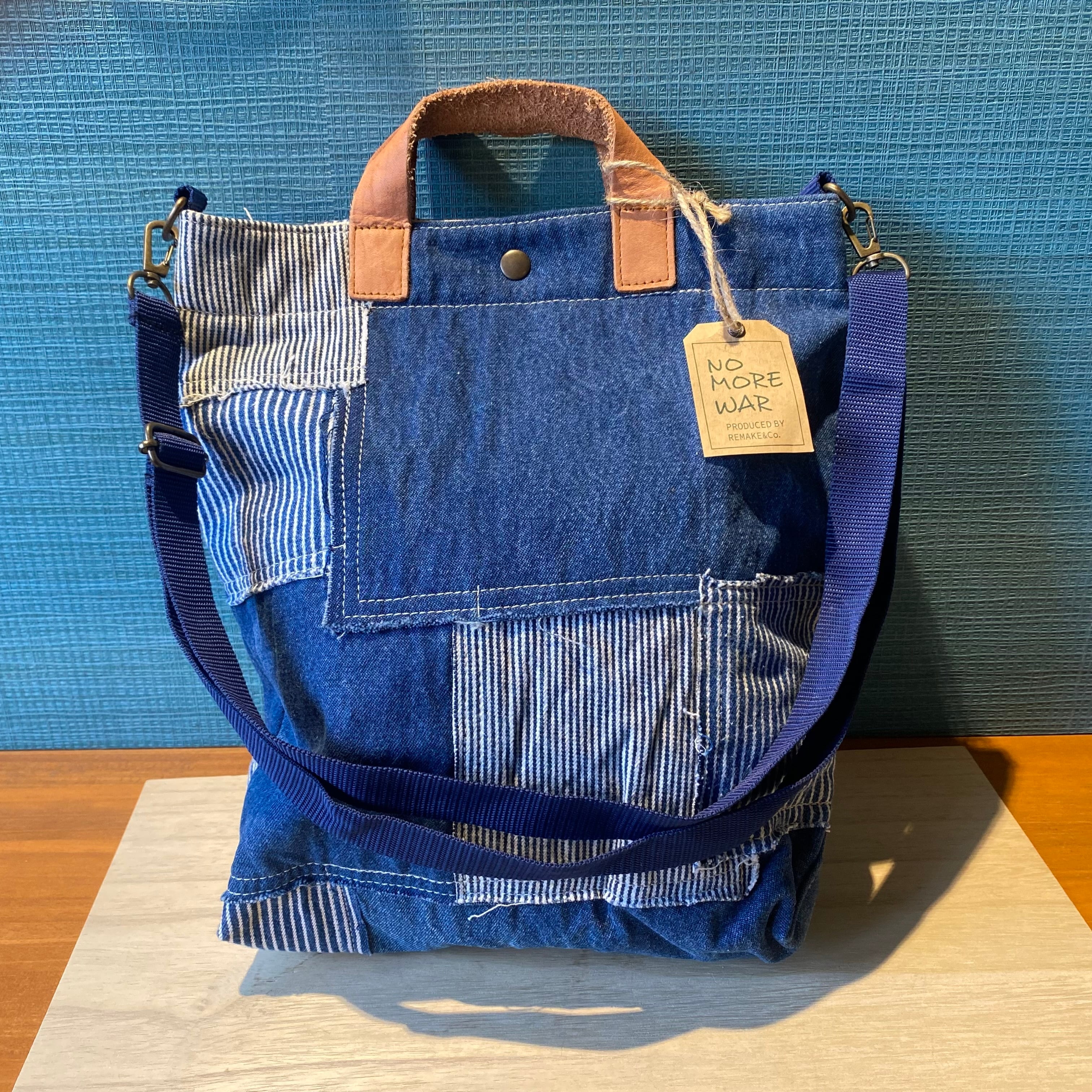 NO MORE WAR ヒッコリー&デニム A4トートバッグ