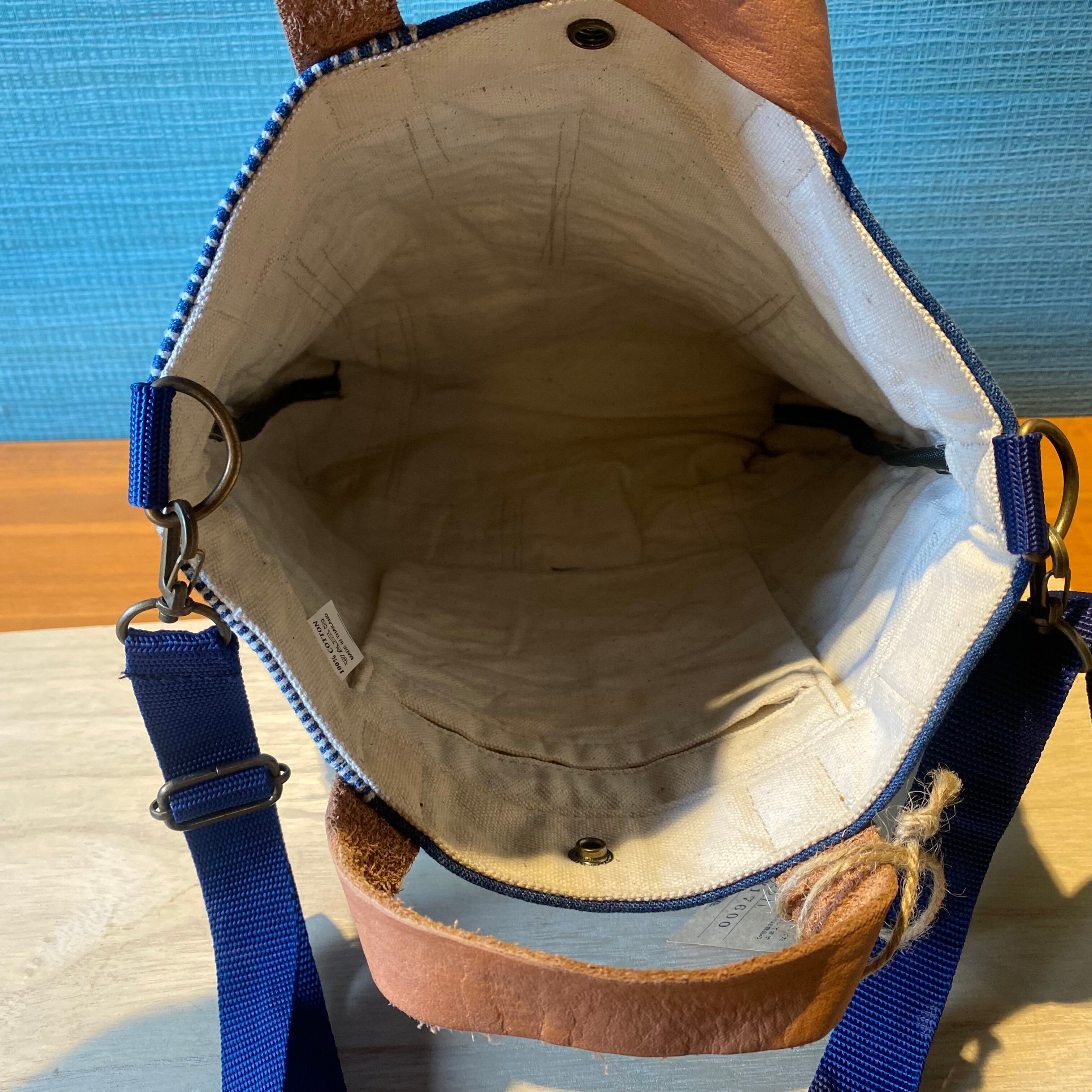このトートバッグは、デニムの質感とヒッコリーの独特な柄が魅力を引き立てます。